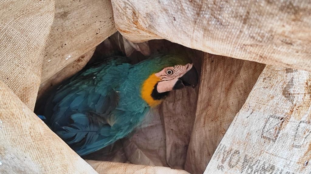 Bombeiros resgatam arara-canindé ferida e filhotes de gato de locais de risco