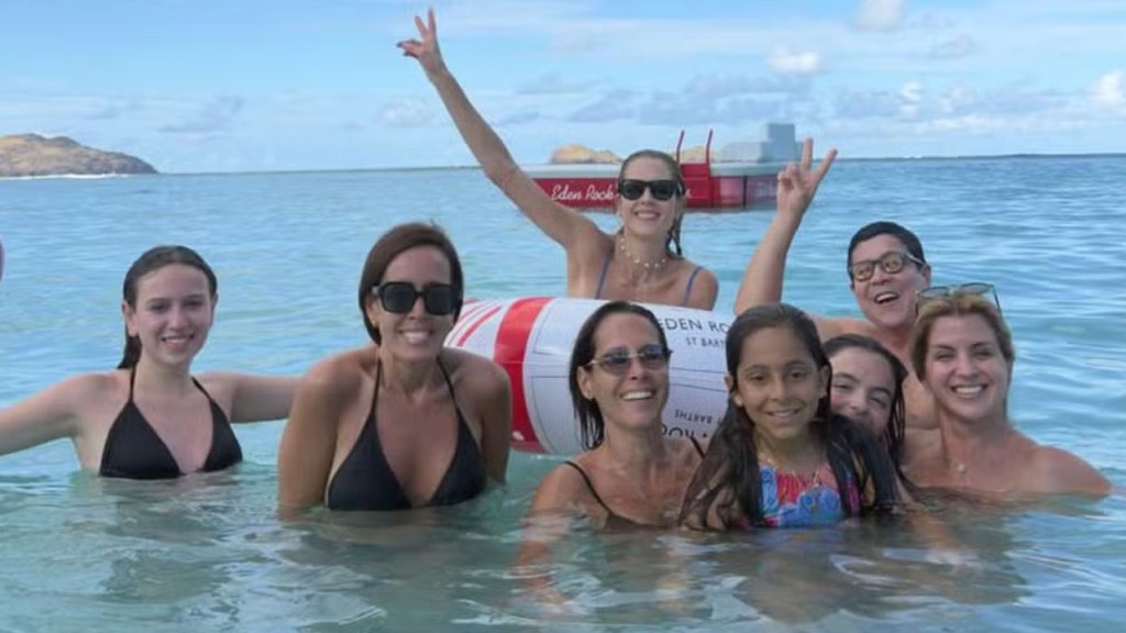 Gianne Albertoni, de 44 anos, curte dias de descanso em St. Barths, no Caribe, ao lado das atrizes Débora Nascimento, de 40, e Monique Alfradique,